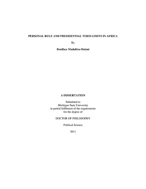 One of the major constitutional innovations that accompanied the transition from the authoritarian rule to more competitive and pluralistic modes of governance at the end of the 20th century in Africa was the adoption of presidential term limits. What have been the effects of term limits on personal rule in Africa? What do the ordinary African themselves think about these rules? Why have some presidents passed legislation that has removed term limits when others abandoned similar efforts and stepped down? These were some of the main questions that this dissertation had sought to address. Through a methodological approach that employed a combination of quantitative and qualitative methodological tools, the study's major findings show that term limits were embraced as a tool for addressing a proclivity among African presidents for personalizing power and remaining in office for long periods. And despite the recent attempts to remove term limits, these rules have helped to transform the African presidency in very important ways. By providing proof that other individuals in society possess leadership abilities, leadership alternations resulting from tenure limits are helping to undermine the justifications for personal rule which were built on the premise that only certain individuals were imbued with leadership qualities.While term limits were widely welcomed and embraced by the public, recent African history has been dominated by attempts by incumbent presidents seeking to revert to the old norm of prolonging tenure. This suggests that despite the transitions towards more competitive political systems, the culture of personal rule refuses to die. While a handful of these bids have been rejected, a high proportion have been passed, resulting in the removal of term limits in almost half of the countries that had only recently embraced tenure limits on the African continent. In trying to discern the reasons to explain the differential outcomes of the third-term bids in Africa, the study's major findings show that the attempts to remove term limits are affected by a host of institutional factors that either aide or frustrate these bids. On one hand, several institutions such as higher government legislative majorities, the military background of the incumbent president, the use of violence, ruling party cohesion and traditions of respect for authority, among others, aide the removal of term limits. On the other hand, institutions such as the precedent of prior alternation, legislative fractionalization, aid dependency, ethnic fractionalization, a united and active civil society, among others, contribute to the rejection of the bids to remove term limits. The other notable findings from the study are that patronage was not a sufficient strategy for removing term limits and that its effect was dependent on the state's ability to identity and punish patronage clients that defaulted by voting against the removal of term limits. In the final analysis, the study concludes by arguing that the bids to remove term limits reflect the enduring personalism in African politics and that informal institutions played a more critical role in influencing the removal of term limits, thus echoing the findings of other studies that suggest that informal institutions continue to play an important role in the African political arena, notwithstanding the transitions that sought to promote formal institutionalism.