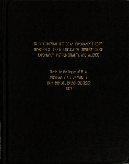 An experimental test of an expectancy theory hypothesis : the multiplicative combination of expectancy, instrumentality, and valence