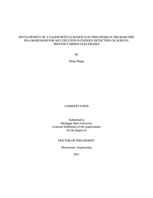 Development of a nanoparticle-based electrochemical bio-barcode DNA biosensor for multiplexed pathogen detection on screen-printed carbon electrodes