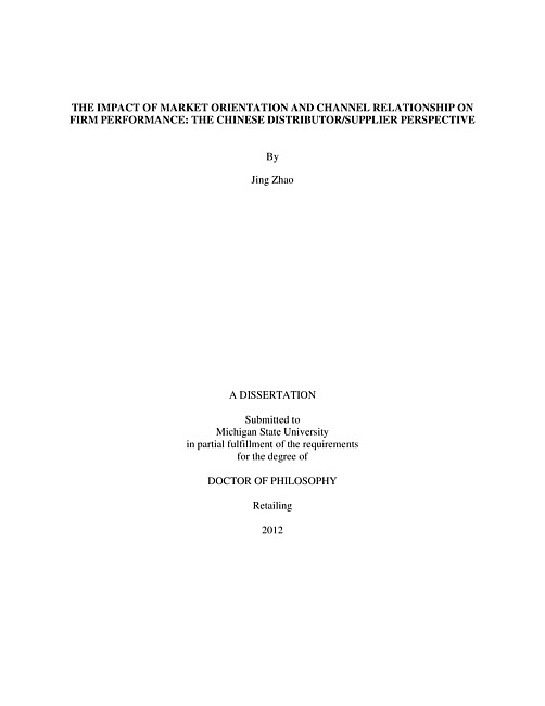 The impact of market orientation and channel relationship on firm performance : the Chinese distributor/supplier perspective