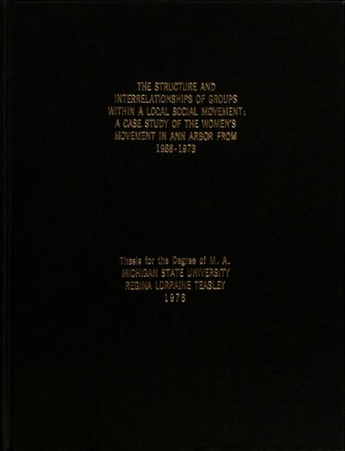The structure and interrelationships of groups within a local social movement : a case study of the women's movement in Ann Arbor from 1968-1973