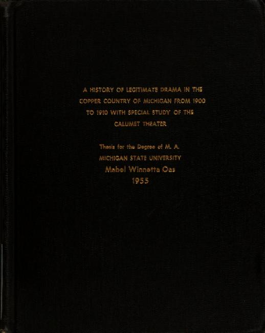 A history of legitimate drama in the Copper Country of Michigan : from 1900 to 1910 with special study of the Calumet Theater