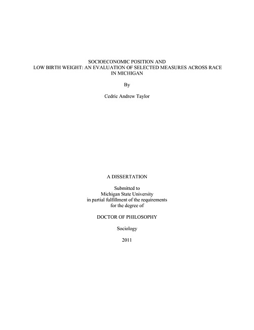 Socioeconomic position and low birth weight : an evaluation of selected measures across race in Michigan