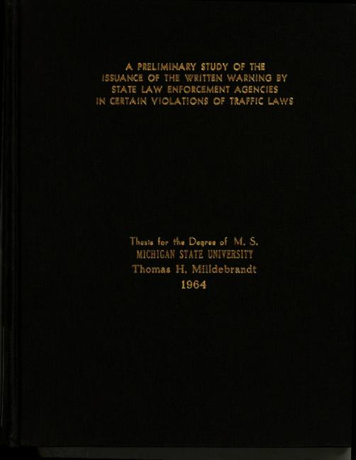 A preliminary study of the issuance of the written warning by state law enforcement agencies in certain violations of traffic laws