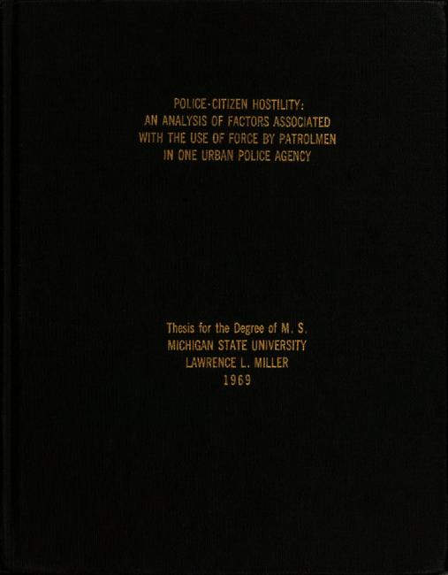 Police-citizen hostility : an analysis of factors associated with the use of force by patrolmen in one urban police agency