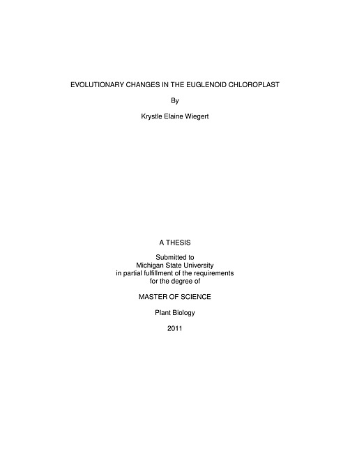 The chloroplasts of three exemplar taxa of photosynthetic euglenoids, have been sequenced and compared, providing an overview of chloroplast evolution in this highly diverse group of organisms which acquired their chloroplast through secondary endosymbiosis. The use of synteny mapping has shown that the chloroplast genomes of euglenoids are not fully collinear, and significant gene rearrangements have occurred across the lineage. The gene rearrangements however, have occurred largely through the repositioning of conserved gene clusters. Gene content among the taxa was similar with only a few variations noted including rpl32, psaI, psaM, rrn5, rpoA and roaA genes. Comparisons between the euglenoid chloroplast genomes also highlighted significant differences in genome sizes, due mainly to expansion/shrinkage of intergenic space and an overall increase in intron number. Further comparisons with the chloroplast genome of Euglena gracilis and green algal taxa provided insight into chloroplast genome evolution within the Euglenophyta. Phylogenies based upon 55 chloroplast genes are nearly identical to those based on nuclear encoded genes, indicating similar evolutionary pathways. Sequence comparisons and phylogenetic analyses have also provided evidence that the putative green algal chloroplast donor lineage was a scaly green algal flagellate belonging to the Prasinophyceae and that the chloroplast was acquired through a single endosymbiotic event.