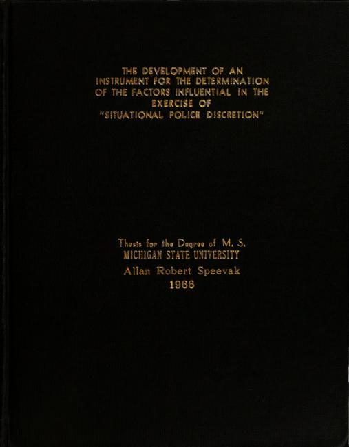The development of an instrument for the determination of the factors influential in the exercise of "situational police discretion"