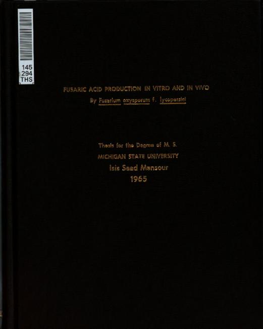 Fusaric acid production in vitro and in vivo by Fusarium oxysporum f. lycopersici
