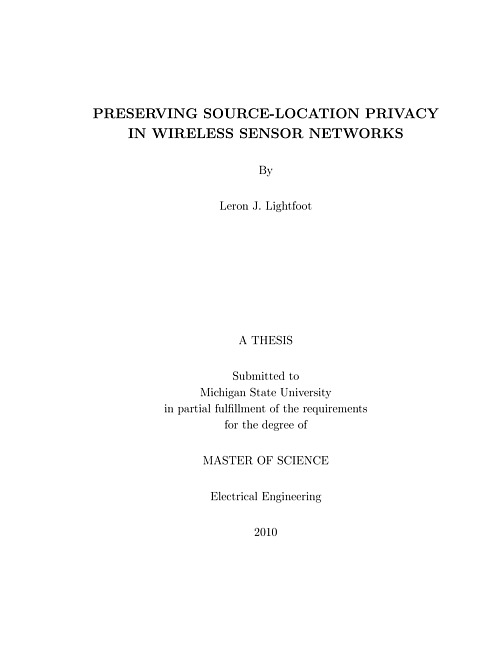 Wireless sensor networks (WSNs) can provide the world with a technology for real-time event monitoring for both military and civilian applications. One of the primary concerns that hinder the successful deployment of wireless sensor networks is source-location privacy. The privacy of the source location is vital and highly jeopardized by the usage of wireless communications.While message content privacy can be ensured through message encryption, it is much more difficult to adequately address the source-location privacy. For WSNs, source-location privacy service is further complicated by the fact that sensors consist of low-cost and energy efficient radio devices. Therefore, using computationally intensive cryptographic algorithms (such as public-key cryptosystems) and large scale broadcasting-based protocols are not suitable for WSNs.Many protocols have been proposed to provide source-location privacy but most of them are based on public-key cryptosystems, while others are either energy inefficient or have certain security flaws. In this thesis, after analyzing the security weakness of the existing scheme, we propose three routing-based source-location privacy schemes. The first scheme routes each message to a randomly selected intermediate node before it is transmitted to the SINK node. However, this scheme can only provide local source-location privacy. In the second scheme, a network mixing ring (NMR) is proposed to provide network-level source-location privacy. The third scheme achieve network-level source-location privacy through a technique we call the Sink Toroidal Region (STaR) routing. For each of these routing schemes, both security analysis and simulation results show that the proposed schemes are secure and efficient.