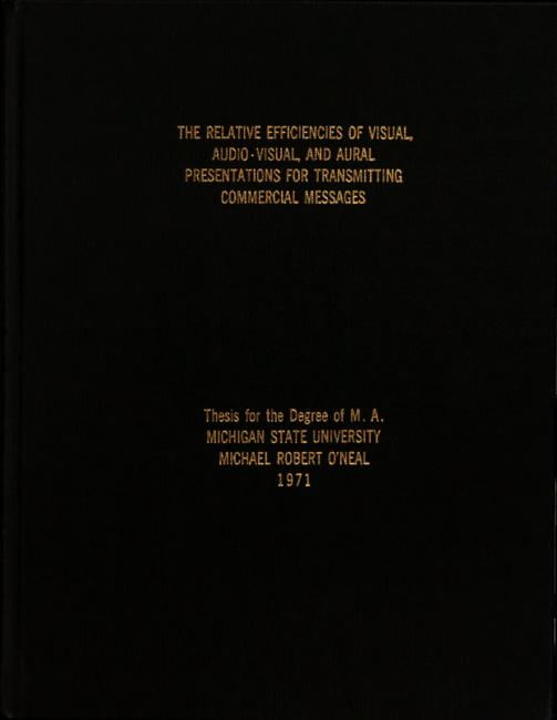 The relative efficiencies of visual, audio-visual, and aural presentations for transmitting commercial messages