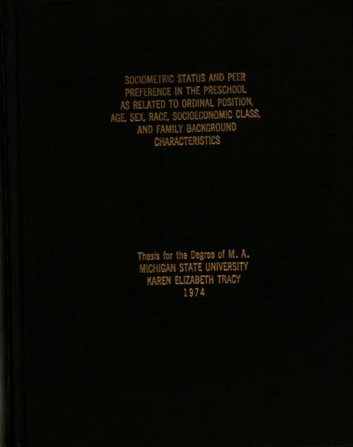 Sociometric status and peer preference in the preschool as related to ordinal position, age, sex, race, socioeconomic class, and family background characteristics