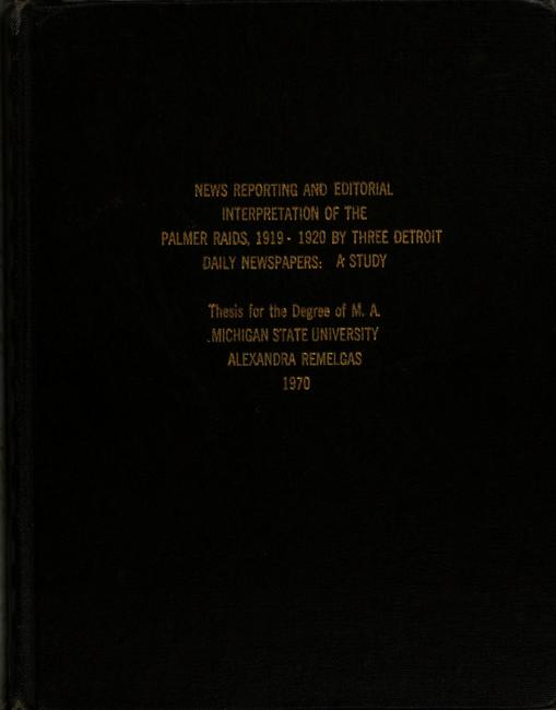 News reporting and editorial interpretation of the Palmer raids, 1919-1920 by three Detroit daily newspapers : a study