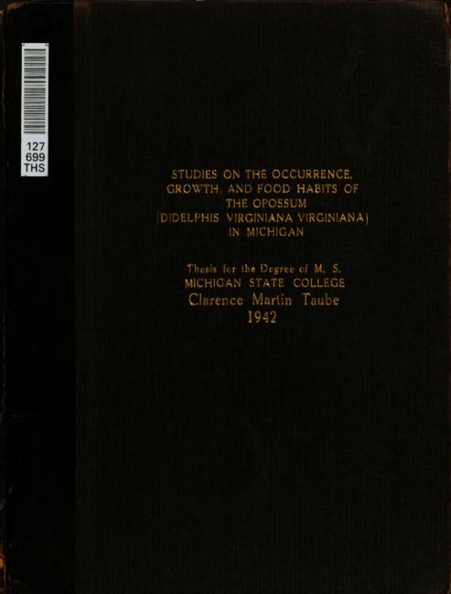 Studies on the occurrence, growth, and food habits of the opossum (Didelphis virginiana virginiana) in Michigan