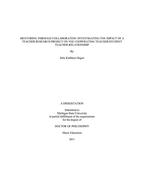 Mentoring through collaboration : investigating the impact of a teacher research project on the cooperating teacher/student teacher relationship