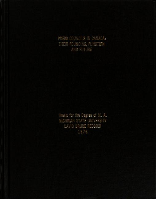 Press councils in Canada : their founding, function and future