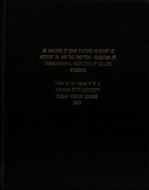An analysis of some factors relevant to interest in, and the adoption-rejection of, transcendental meditation bu college students