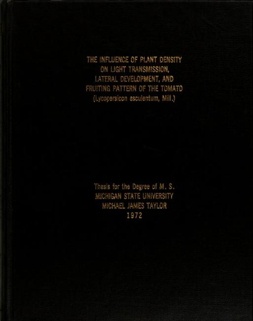 The influence of plant density on light transmission, lateral development, and fruiting pattern of the tomato (Lycopersicon esculentum, Mill.)