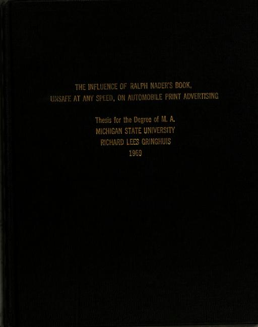 The influence of Ralph Nader's book, Unsafe At Any Speed, on automobile print advertising
