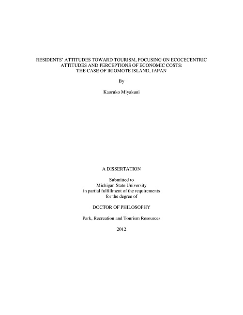 Residents' attitudes toward tourism, focusing on ecocecentric attitudes and perceptions of economic costs : the case of Iriomote Island, Japan