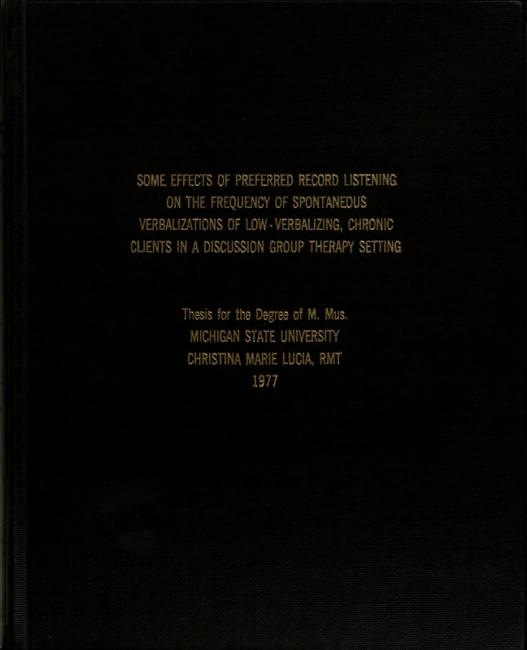 Some effects of preferred record listening on the frequency of spontaneous verbalizations of low-verbalizing, chronic clients in a discussion group therapy setting