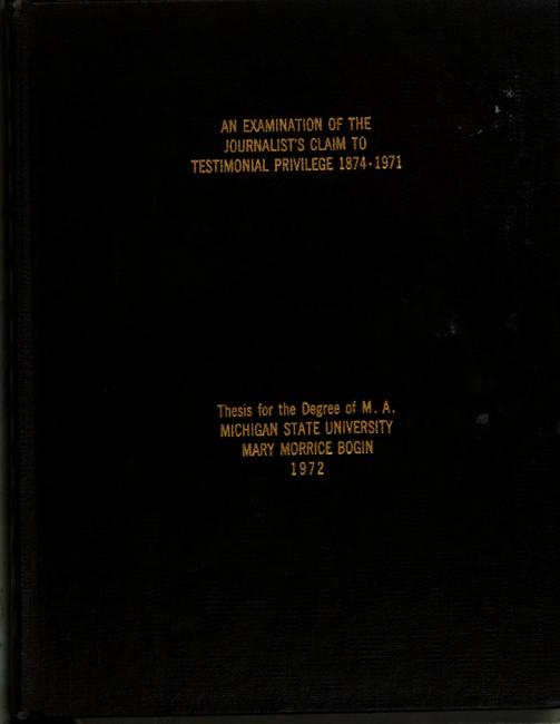 An examination of the journalist's claim to testimonial privilege 1874-1971