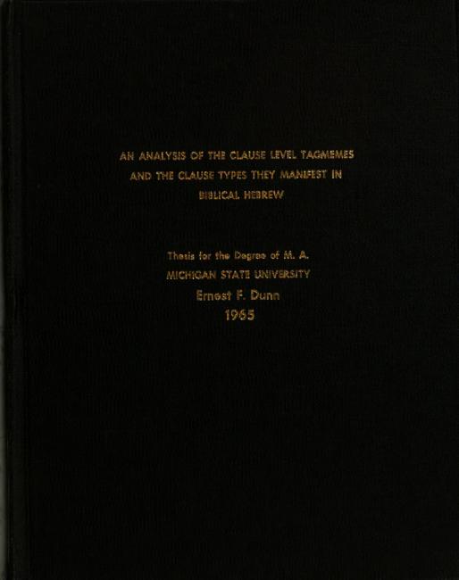 An analysis of the clause level tagmemes and the clause types they manifest in Biblical Hebrew