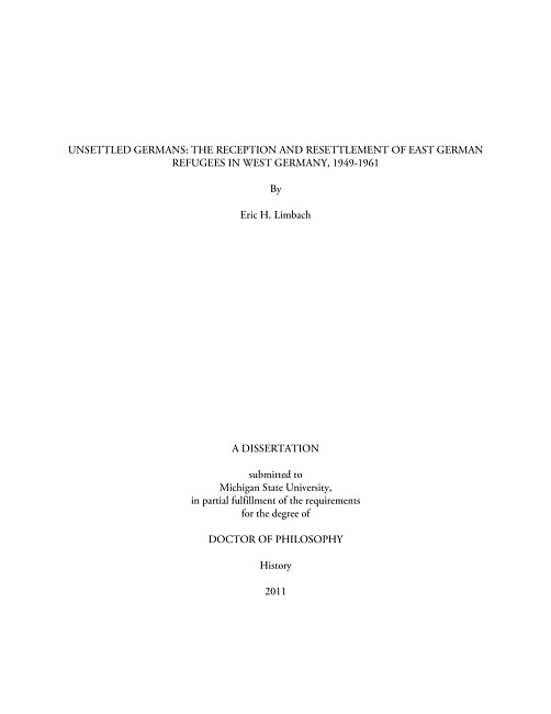 Unsettled Germans : the reception and resettlement of East German refugees in West Germany, 1949-1961