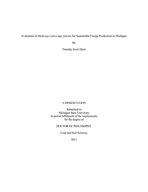 Evaluation of Medicago sativa spp. falcata for sustainable forage production in Michigan