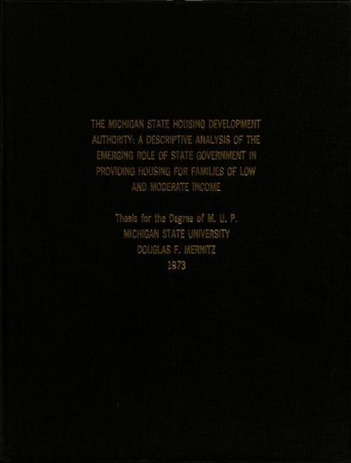 The Michigan State housing development authority : a descriptive analysis of the emerging role of state government in providing housing for families of low and moderate income