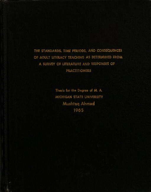 The standards, time periods, and consequences of adult literacy teaching as determined from a survey of literature and responses of practitioners