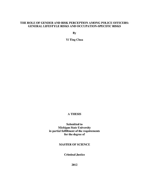The role of gender has been shown to be important in numerous academic fields. This is the case for the study of risk perception and the study of policing. Within the risk perception literature, it has been consistently found that women tend to perceive higher levels of risks compared to men. Similar results remain even when factors such as education and knowledge are controlled for; such as examining specific occupation groups such as scientists, where a gendered driven risk perception gap still exists. The effect of gender is less consistent when examining police officers' behavior. However, there is a noticeable lack of studies that focus on the study of risk perception among police officers with an emphasis on gender effect. Thus, this research is an attempt to bridge the gaps between the two fields via the investigation of whether gender difference in risk perception occurs within one particular occupation - police officers. Two police departments from a city in the Mid-West were selected for this study. Surveys, both by paper and electronically, were administered to the departments. The survey examined officers' perception of risk in relation to work related hazards and hazards encountered in daily civilian life and related factors (such as worldviews). The survey was adapted from previous studies on risk perception and the "White Male Effect". The results of the research will expand existing literature from a theoretical and practical viewpoint: theoretically, it will expand the knowledge on how risk perception is viewed in occupational groups working under a higher-risk environment and the role that gender plays in this process. Practically, it will provide new information to aid policing agencies in addressing potential gender gap in risk perception related to work activities.