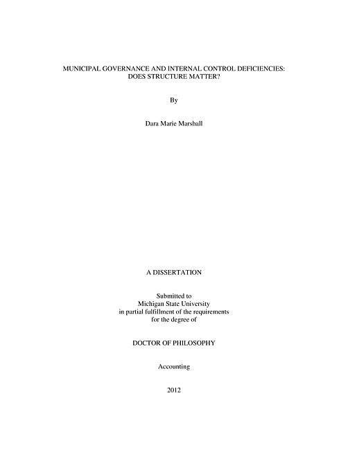 Municipal governance and internal control deficiencies : does structure matter?