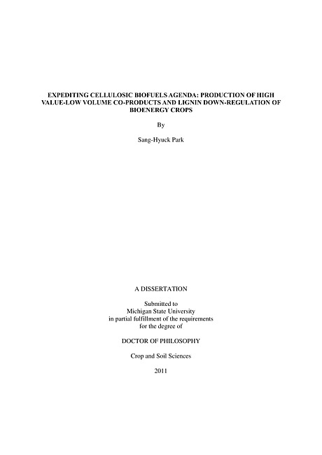 Expediting cellulosic biofuels agenda : production of high value-low volume co-products and lignin down-regulation of bioenergy crops