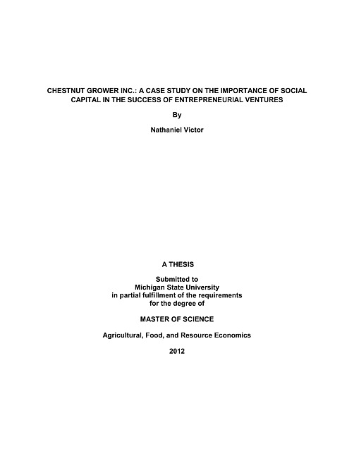 Chestnut Grower Inc : a case study on the importance of social capital in the success of entrepreneurial ventures