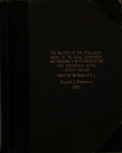 The relation of the intelligence rating to the social environment & personality of students of the Foch intermediate school, Detroit, Michigan