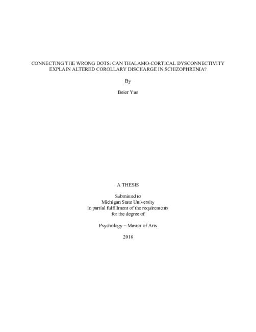 Connecting the wrong dots : can thalamo-cortical dysconnectivity explain altered corollary discharge in schizophrenia?