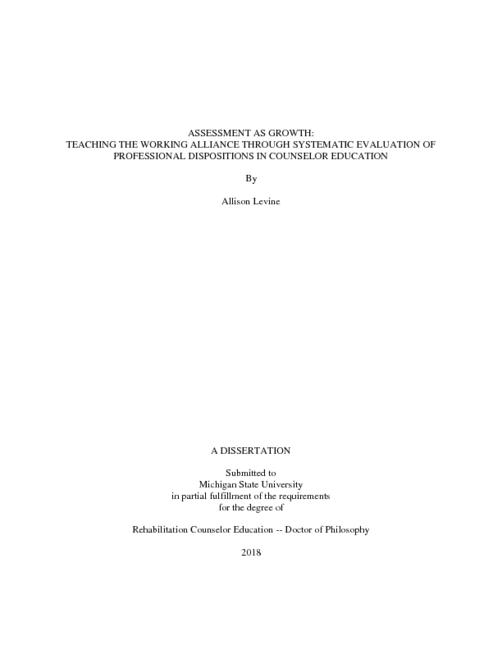 Assessment as growth : teaching the working alliance through systematic evaluation of professional dispositions in counselor education