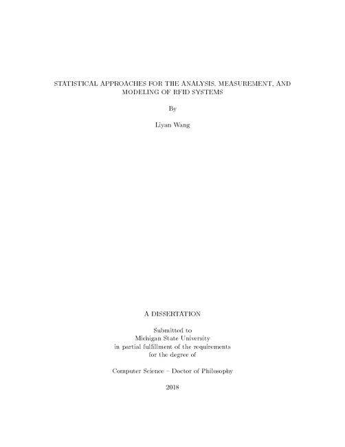 The goal of this thesis is to develop statistical and learning algorithms for the analysis, measurement, and modeling of wireless networking( Radio frequency identification systems).Radio frequency identification (RFID) systems are widely used in logistic, supply chain industry and inventory management. RFID is already in use in multiple industries and for various purposes. The device in your car that lets you zoom by in the fast lane at a tollbooth, while deducting a dollar amount from your account, is an example of RFID technology in everyday use. Mostly, existing RFID systems are primarily used to identify the RFID tags present in a tag population(e.g., tracking a specific tag from a tag population) while identifying some specific tags is a critical operation, it is usually very time consuming and is not desired or necessary in some situations. For instance, if the objective is to determine whether any of the tags are missing(e.g., to detect some items according to a consignment), the first thing to do is to identify all tags’ ID and then compare with the original record to determine if there is any tags are missing. Definitely, the whole process will be very slow if we have a very large tag population. In this thesis, I present novel statistical algorithms to enable fast and new applications in RFID systems. For example, detecting the missing tags in a large tag population with high accuracy while using the existing infrastructure of RFID systems which is already deployed in industry. More pacifically, I present my work on designing statistical algorithms for estimation the number of missing tags in a population of RFID tags, for detecting and identifying the missing tags from a population of RFID tags.The key distinction of my work compared to prior art is that my methods are compliant with EPCGlobal Class 1 Generation 2 (C1G2) RFID standard. It is critical for RFID methods to be compliant with the C1G2 standard since the commercially available of-the- shelf RFID equipment follows the C1G2 standard. A method which does not comply with the C1G2 standard cannot be deployed on the existing installations of RFID systems because it requires custom hardware, which will cost a lot. In an RFID-enabled warehouse, there may be thousands of tagged items that belong to different categories, e.g., different places of origin or different brands [72]. Each tag attached to an item has a unique ID that consists of two fields: a category ID that specifies the category of the attached object, and a member ID that identifies this object within its category. As a manager of the warehouse, one may desire to timely monitor the product stock of each category. If the stock of a category is too high, it may indicate that this product category is not popular, and the seller needs to adjust the marketing strategy (e.g., lowering prices to increase sales). On the contrary, if the stock of a category is too low, the seller should perform stock replenishment as soon as possible. Manual checking is laborious and of low time-efficiency. You cannot imagine how difficult it is for a manager to manually count the number of items in each category that may be stacked together or placed on high shelves. Hence, it is desirable to exploit the RFID technique to quickly obtain the number of tagged items in each category. A multi-category RFID estimation protocol should satisfy three additional requirements. First, it should be standard compliant; otherwise, it will be difficult to be deployed. Second, it should preserve the privacy of tags by not reading their member IDs. Third, it should work with both a single-reader and multiple-reader environments. As the communication range between a tag and a reader is limited, a large population of tags is often covered by multiple readers whose regions often overlap.