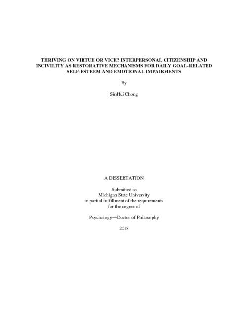 Thriving on virtue or vice? Interpersonal citizenship and incivility as restorative mechanisms for daily goal-related self-esteem and emotional impairments