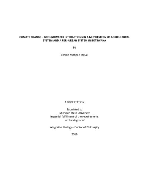 Climate change : groundwater interactions in a Midwestern US agricultural system and a peri-urban system in Botswana