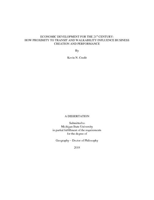Economic development for the 21st century : how proximity to transit and walkability influence business creation and performance