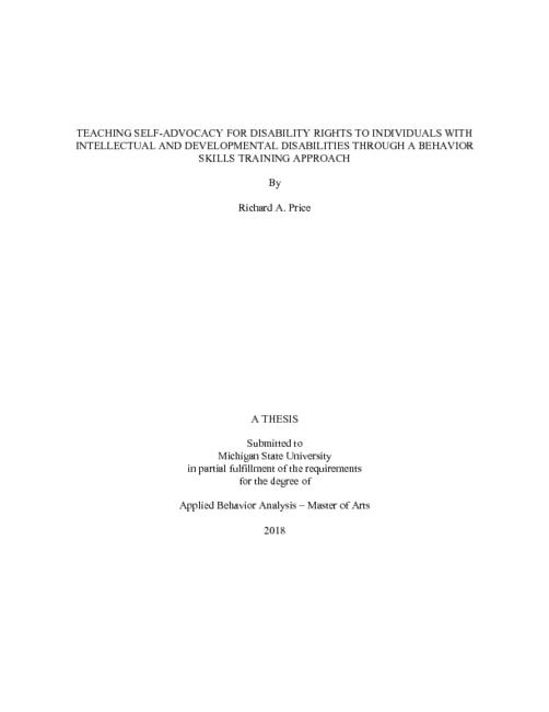 Teaching Self-Advocacy for Disability Rights to Individuals With Intellectual and Developmental Disabilities Through a Behavior Skills Training Approach