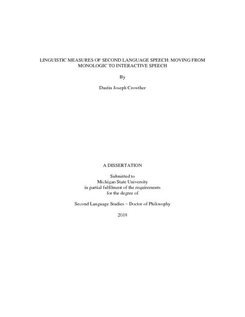 Linguistic measures of second language speech : moving from monologic to interactive speech