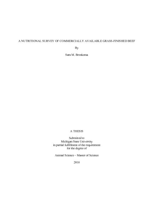 Consumer interest in the source of their food, its environmental footprint, and the impact of diet on health has supported the growth of the grass-finished beef (GFB) industry. Studies have concluded that GFB has distinct nutritional differences from conventionally-finished beef. As the GFB industry continues to expand, it is vital to continue to explore the nutritional complexities and variation in the product. To achieve this aim, a survey of grass-finishing production systems throughout the U.S. was conducted, and the beef finished on participating farms was analyzed for its nutritional composition, including fatty acid (FA), mineral and fat-soluble vitamin content. Annual production capacity of farms ranged from 25 to 5,000 cattle, with a mean age of cattle at harvest of 26.8 ± 2.3 months. An array of finishing diets included grazing exclusively perennial pasture, the incorporation of annual forage crops, as well feeding a variety of harvested forages and supplementation of non-starch feed byproducts. The ratio of omega-6 (n-6) to omega-3 (n-3) FA in beef samples averaged by producer ranged from 1.8 to 28.3, with an overall sample set median of 4.1. Only n-3 FA varied between harvest season, with a greater amount found in beef harvested in the spring. Mineral content was highly variable by season and producer, due to the inherent variation of soil and forage mineral content. Mean α-tocopherol content was 610.6 μg/100 g beef, and mean β-carotene content was 32.2 μg/100 g. The amount of these antioxidants also varied between producers, but tended to be greater in beef finished solely on fresh forages. This survey indicates that commercially available GFB can vary in its nutritional composition due to the diverse practices used to grass-finish cattle.