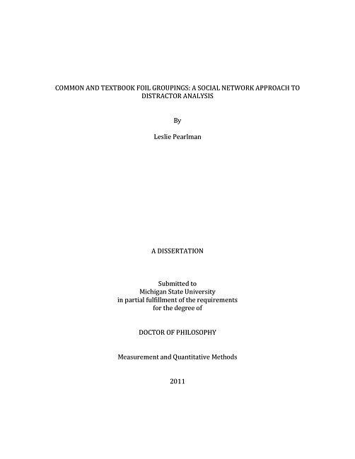 Common and textbook foil groupings : a social network approach to distractor analysis