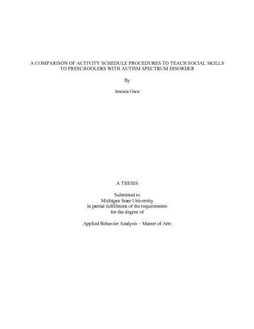 A comparison of activity schedule procedures to teach social skills to preschoolers with autism spectrum disorder