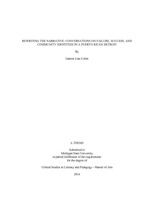 Rewriting the narrative : conversations on failure, success, and community identities in a Puerto Rican Detroit