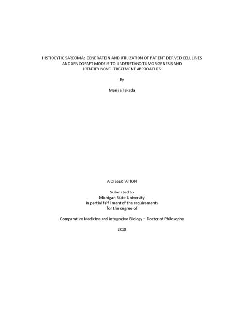 Histiocytic sarcoma : generation and utilization of patient derived cell lines and xenograft models to understand tumorigenesis and identify novel treatment approaches