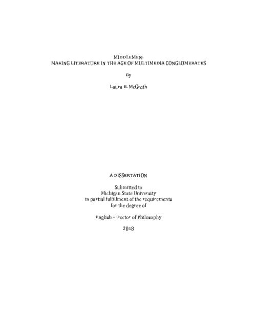 In the 1980s and 90s, the publishing industry in the United States was transformed by a series of mergers and acquisitions, as long-standing houses were subsumed into international multimedia conglomerates to form what we now know as The Big Five—Hachette Book Group, HarperCollins, Macmillan, Penguin Random House, Simon and Schuster. Though conglomeration revolutionized the processes of literary production, scholars have paid little mind to these corporate practices. This dissertation investigates the ways that literature is made today by focusing on the overlooked professionals shaping the field of contemporary literary production: Agents, Editors, Authors, and Distributors. Too often dismissed as mere bureaucratic functionaries, these middlemen are in fact powerful nodes between artist and corporation, and they force us to rethink the category of literary production as a form of corporate creativity. Exploring the influence of middlemen on contemporary literary forms, I blend computational methods, ethnography, literary history, and close reading to model a new method for analyzing the field of literary production. I reveal how these professionals operate as administrators of literary prestige and “corporate taste” today, shaping the form and content of contemporary fiction while providing access to mainstream publication and cultural consecration. I argue that contemporary fiction allegorizes the logic of the marketplace, even while critiquing the neoliberal corporatization of literary production.