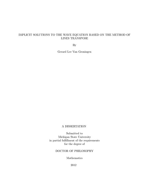 We present a numerical method for computing the wave equation implicitly. The approach discretizes the wave equation in time using the method of lines transpose, also known as the transverse method of lines or Rothe's method. This differs from conventional methods in that we solve the resulting system of ODEs using boundary integral methods. We then analyze the fully discretized solution resulting from the midpoint and trapezoidal quadrature rules and show that convergent and unconditionally stable schemes result. We also show that the choice of discretization in time can lead to various schemes of prescribed accuracy, which may or may not introduce numerical dissipation into the approximate solution. We start with the simplest case of solving the wave equation in one dimension using either a free space solution or Dirichlet or Neumann Boundary conditions. We then analyze the stability and consistency of the method, as well as investigating the dispersion relations and deriving the phase error. Next, some numerical examples are presented which give validation to the error estimates. Further, the method is adapted for both outflow boundary conditions, using either one-way waves or a perfectly matched absorbing layer, as well as the implementation of a soft source. Finally, we utilize an ADI scheme to explore solving the wave equation in higher dimensions.Since this method of lines transpose approach is implicit, it removes the usual CFL stability limit inherent in explicit time stepping methods for solving the wave equation, and thus the algorithm will be more efficient than these explicit methods.